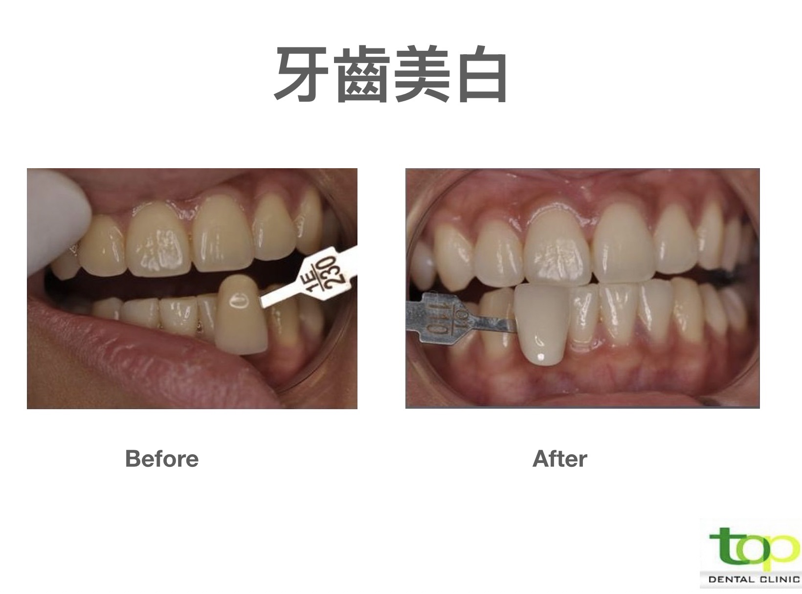 牙齒表面的顏色會隨著年齡增加而變暗甚至變成棕橙色。此外,抽煙、喝咖啡、茶、紅葡萄酒等或先天、遺傳和藥物(如四環素)引起的牙齒變色,皆可透過冷光美白改善牙齒的顏色。